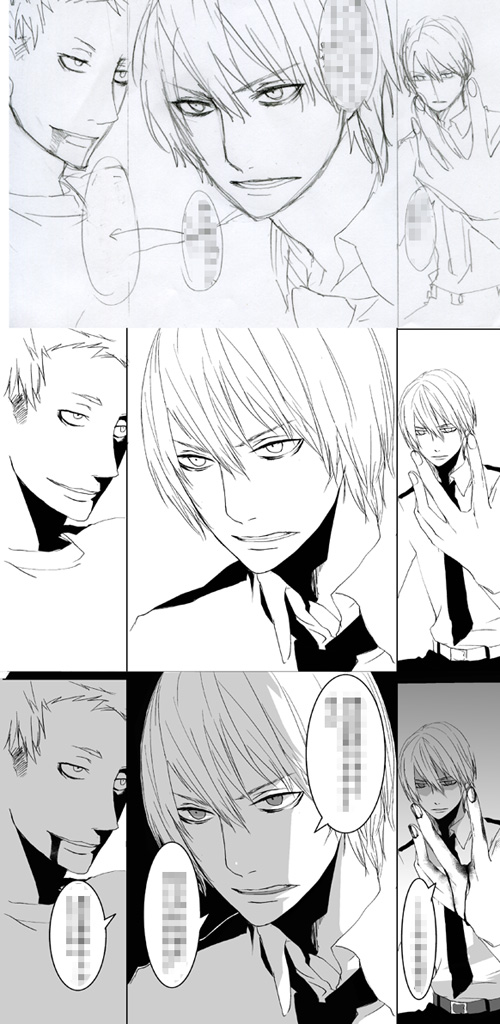絵は上から、下書き→ペン入れ→仕上げの状態です。